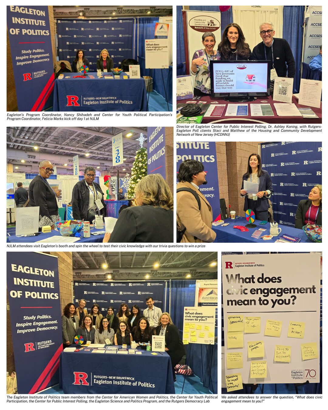 The Eagleton Institute of Politics, in partnership with the Rutgers Democracy Lab, hosted its first booth as an exhibitor at the 110th New Jersey League of Municipalities Conference in Atlantic City, NJ, in addition to holding two sessions organized by the Eagleton Science and Politics Program and the Center for Public Interest Polling.
